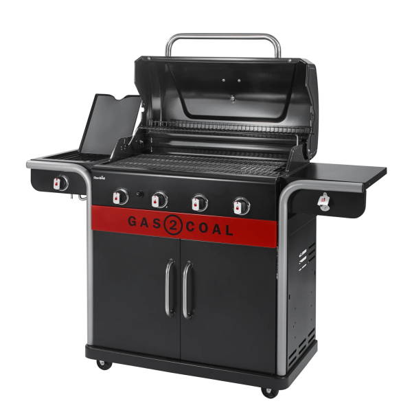 charcoal, here is Char-Broil’s Gas2Coal 4 Burner hybrid grill, the